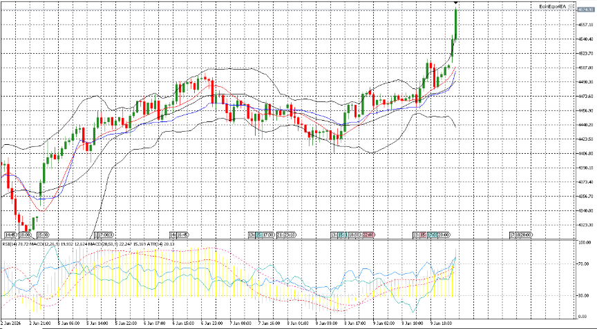 XAUUSD opened at 4479.7 at 01:00, slipped to the session low of 4452.98 by 03:08, and then worked higher into the afternoon to register the session high of 4517.2 at 17:42, which also marked a 5‑day high. It settled at 4509.4 by 23:56, up 29.7 on the day, a gain of 0.663%. The intraday span was 64.22, equal to 1.43% of the open and representing 69.2% of the D1 ATR, with the close positioned near the upper end of the day’s range. The session midpoint was 4485.09, and price finished above it. Round‑number levels featured, with trade on both sides of 4500 and a push above the 4510 figure during the high; into the close, price was 0.6 below 4510. While a 5‑day high was achieved, the move remained below the 10‑day high at 4550.03. Structurally, the day formed an early low in the first hours after the open, progressed to an afternoon high, and consolidated into the final print, leaving the close roughly 7.8 below the peak and well removed from the morning trough. On a multi‑session basis, the new 5‑day high underscores a shift in the near‑term range ceiling to 4517.2, while the 10‑day marker at 4550.03 continues to cap the broader band. Overall, the session recorded an upward daily change, an above‑midpoint close, and a range that fell short of a full D1 ATR, with price action centered in the upper quadrant of the day’s distribution.
